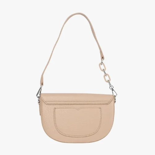 The secure zipper closure keeps your belongings safe, while silver-tone fittings enhance the understated beige color. Inside, you’ll find one main compartment with interior pockets for neat and convenient storage. Suitable for year-round use, this small-sized bag is ideal for travel, casual outings, or daily activities.