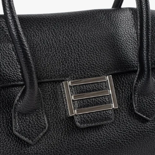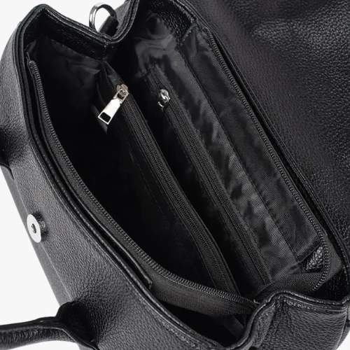 It includes two main compartments and interior pockets to keep your items organized. The secure zipper closure ensures belongings stay safe, while silver-tone fittings enhance the timeless black color. Protective feet at the bottom help maintain the bag’s shape and keep it clean. Designed for year-round use, this medium-sized shoulder bag is suitable for work, travel, or casual outings.